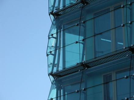 Die Tragkonstruktion der Doppelfassade nimmt die Krümmung der Fassade in ihren organischen Formen auf.