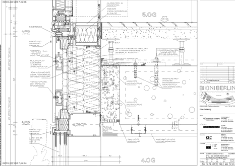 BIKINI BERLIN Leitdetail: V-Schnitt Elementfassade, Übergang Festfeld / Tür, Bauteil Bikini, Zooseite