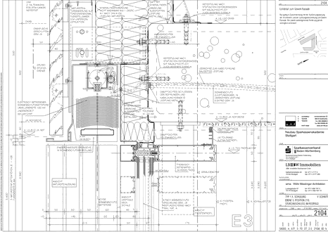 Sparkassen-akademie, Stuttgart Leitdetail: V-Schnitt Sturzanschluss, Lochfenster in Natursteinfassade