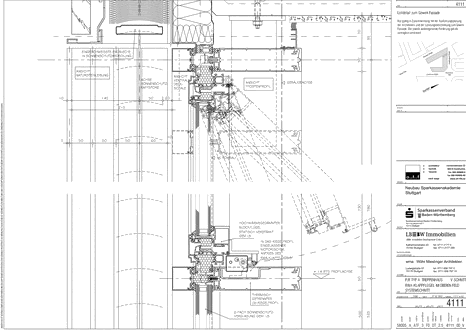 Sparkassen-akademie, Stuttgart Leitdetail: V-Schnitt RWA-Klappe in P/R-Treppenhaus