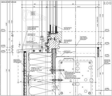 Bremer Landesbank, Bremen Leitdetail V-Schnitt polygonale Innenhoffassade, Brüstungsanschluss