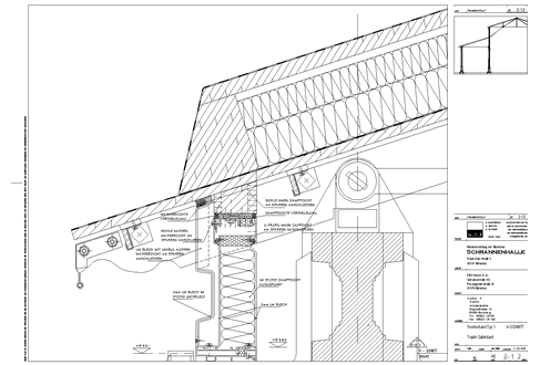 Schrannenhalle guiding detail drawing: v-section Traufe Satteldach