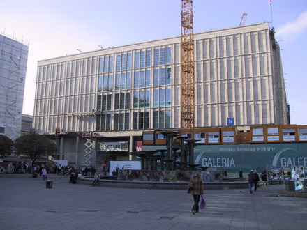 Galeria Kaufhof elevation: modulated natural stoned facade