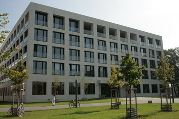 2007 - 2009 new construction, administration, social sciences, jurisprudence and economics 15.000m² natural-stone facade, 15.000m² single windows, 7.000m² elemented facade, glass roof, aluminium-sheet facade