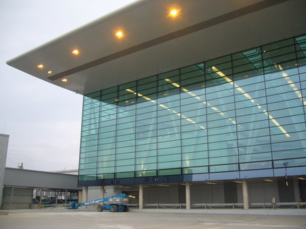 F.I.A. TERMINAL 2 View: mullion-transom construction terminal facade, facing the airfield and roof construction