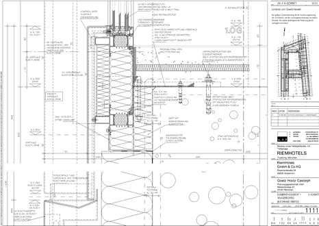 Riem Hotels, München Reference detail: vertical sectionelemented facade, vertical aluminium sheet over groundfloor
